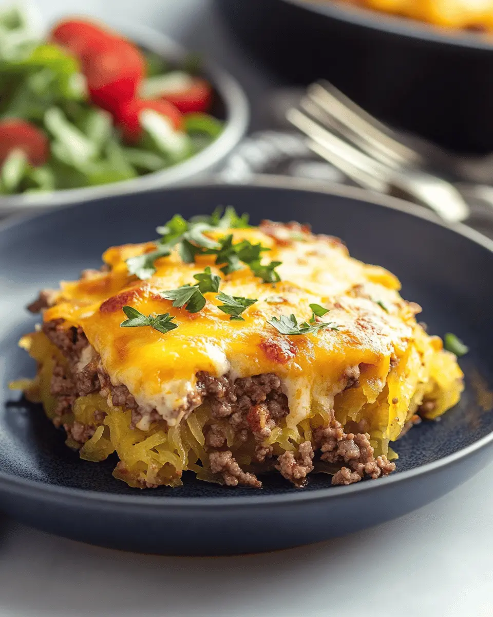 In conclusion, the Cheeseburger Spaghetti Squash Casserole is a delightful blend of flavors that satisfies your cravings while keeping health in mind. This low-carb dish not only showcases the comforting essence of a cheeseburger but also incorporates the nutritional benefits of spaghetti squash. It’s perfect for young professionals and busy home cooks alike, providing a quick and hearty meal option.