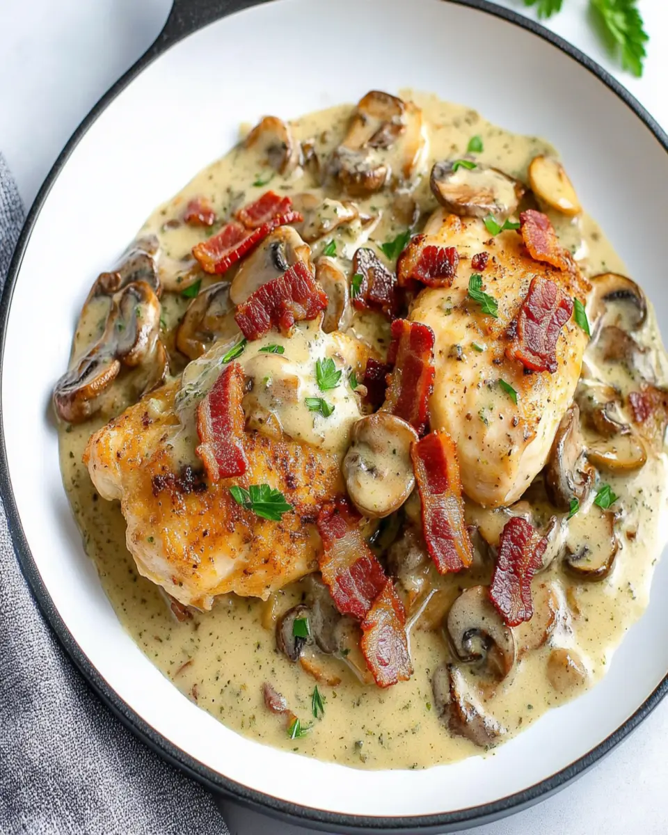 The combination of crispy bacon, tender chicken, and earthy mushrooms creates a symphony of flavors that delight with every bite. Plus, the rich cream sauce is so satisfying that you might forget it’s keto-friendly! Whether you’re entertaining friends or simply treating yourself after a long day, this dish offers a restaurant-quality experience at home.