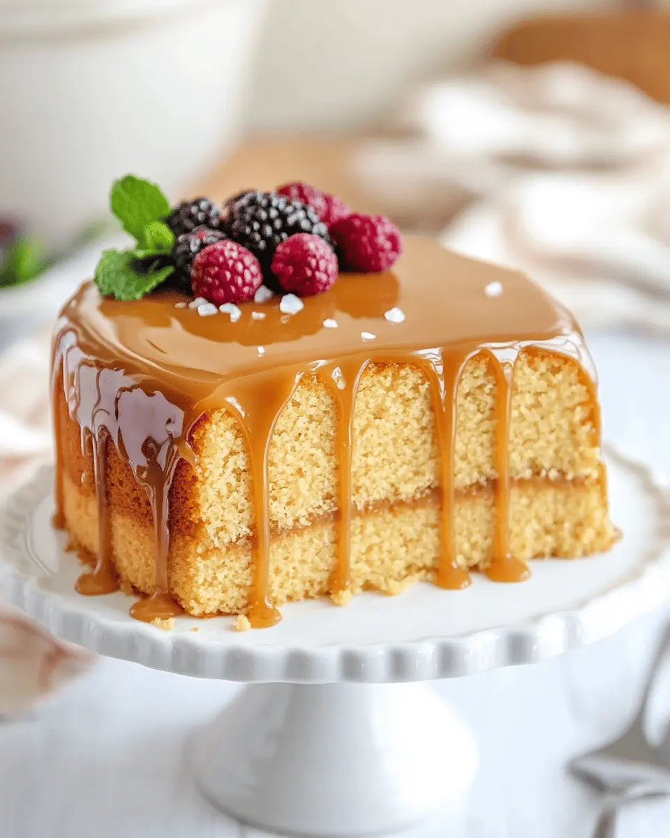 The Keto Caramel Cake is a delightful treat that shines on its own, but there are plenty of ways to elevate your serving experience. For a classic touch, serve each slice with a dollop of whipped cream, adding a light and airy contrast to the rich cake. Alternatively, you can pair it with fresh berries, such as raspberries or strawberries, which provide a refreshing burst of flavor and a pop of color on your plate.