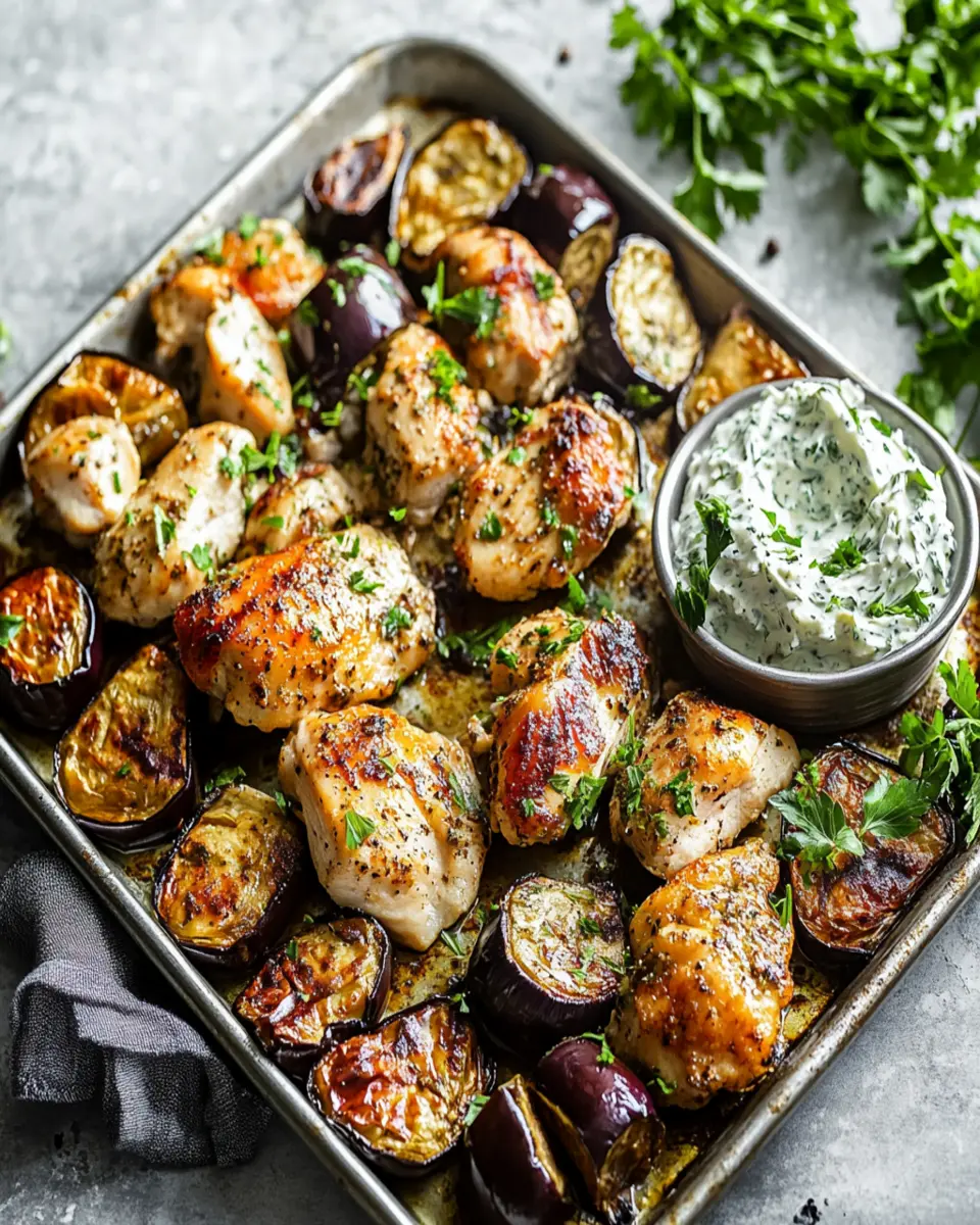 Keto Chicken and Eggplant Sheet Pan with Tzatziki