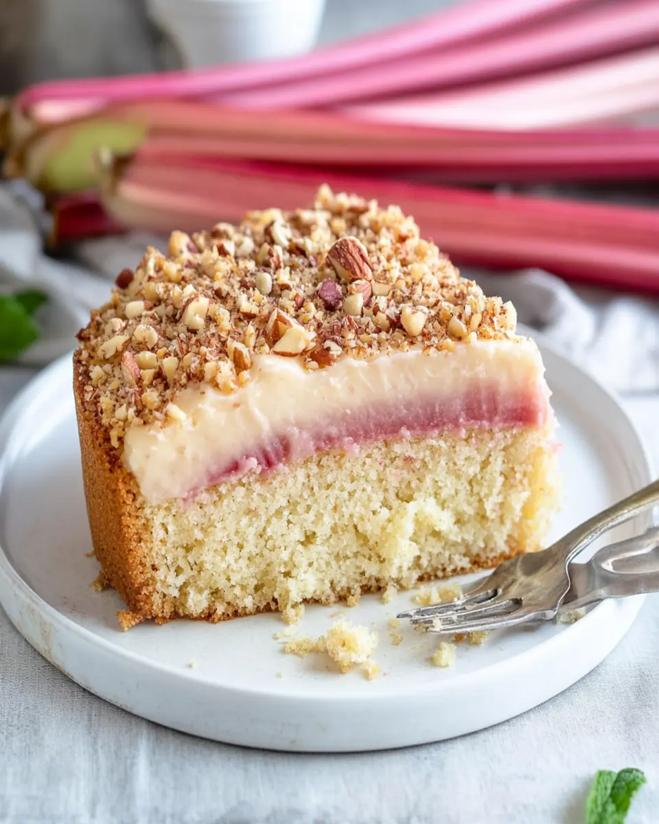 While rhubarb is the star of this cake, you can experiment with other fruits like strawberries or blueberries. Mixing these fruits with rhubarb can create a delightful tartness and sweetness that will surprise your taste buds. Don’t hesitate to adjust the sweetener to balance the flavors!