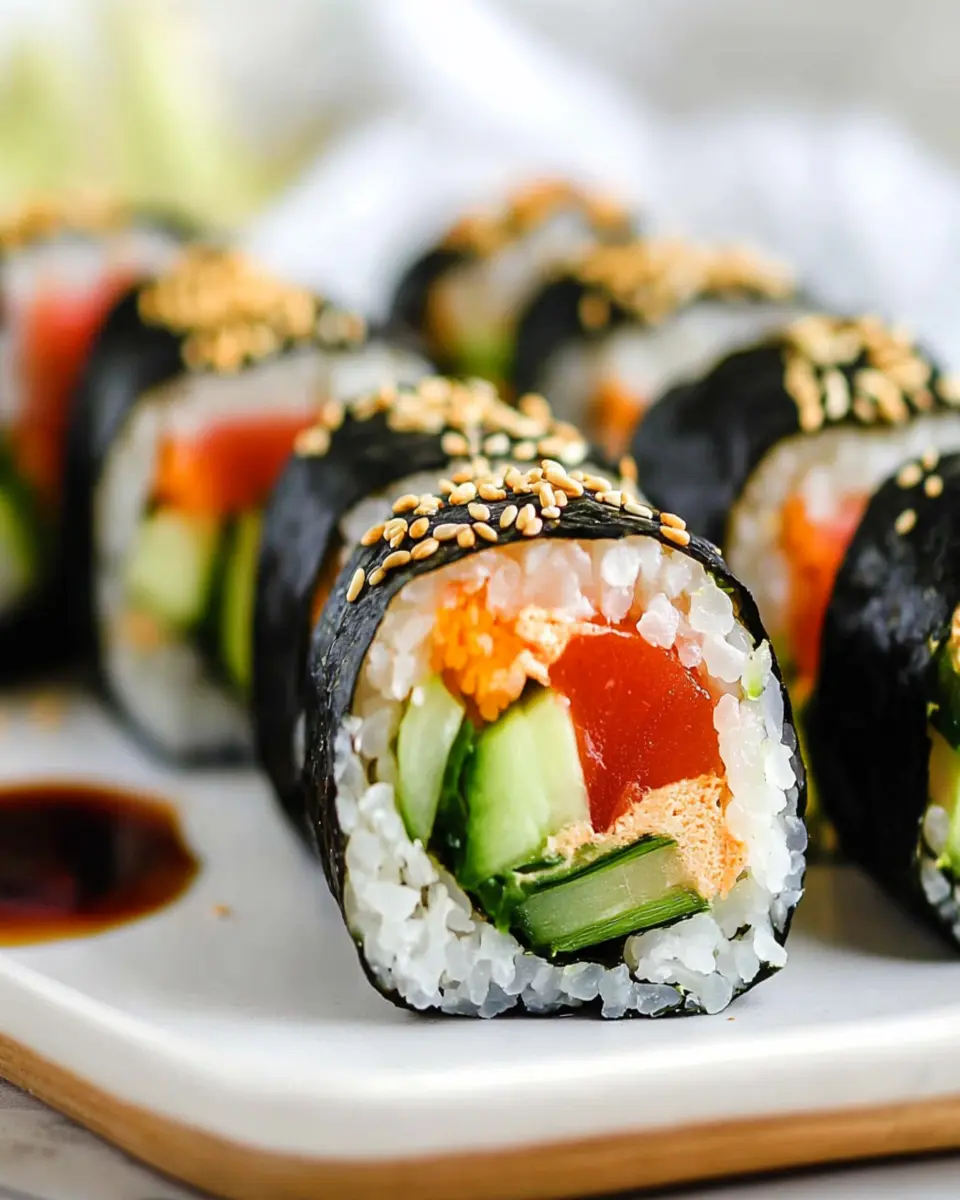 When serving, slice your sushi rolls into bite-sized pieces and arrange them neatly on a platter. For a colorful touch, garnish with sesame seeds or thinly sliced green onions. This not only makes the dish more visually appealing but also invites your guests to dig in!